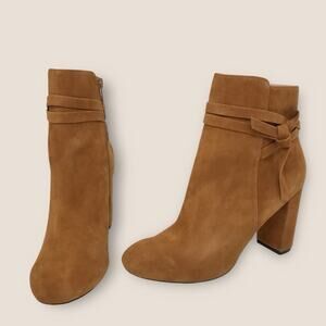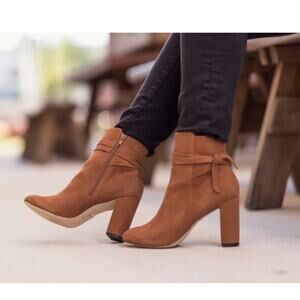 Sole Society Brown Kid Suede Booties Wrap Flynn Ankle Almond Toe