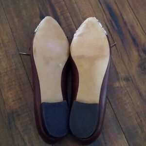 Excellent pre owned condition. Sole Society - Brown Lillie Pointed Flats. Brown genuine leather with calf hair. Tie that has laces at the toe. Cream and brown pattern. Slight perkins in insole where the tag was.