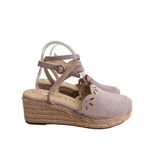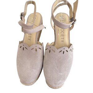 Sole Society Calysa Mauve Espadrille Wedge Sandals Laser-Cut Detail Womens 9.5