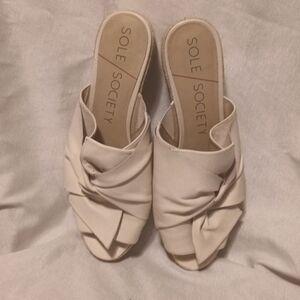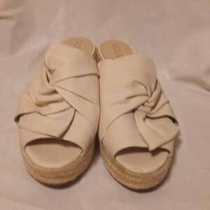 Sole Society Carmina beige leather espadrille wedge open toe sandal size 10