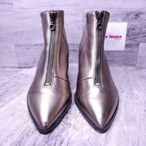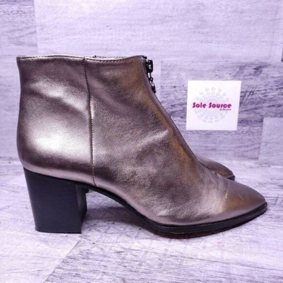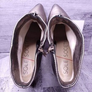Sole Society Desiray Metallic Leather Block Heel Ankle Boot Champagne Women's 7