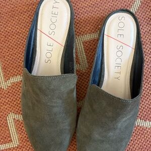 Sole Society "Esther" Loafer Mule - Olive Green Suede Size 9.5