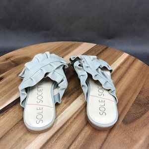 Sole Society Gray Fabric Pleated Slides Sandals Womens Size 6 B