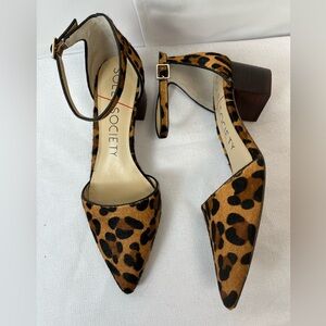 Sole Society Leopard Print Women's Cow Hair Fur Block Heels Shies 7.5 Pointed Toe Ankle Streps In Excellent Condition See pictures