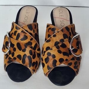 Cezanne. Leopard printed heeled sandals in calf hair. Chunky blocked heel. Worn once. Excellent condition. 3-inch heel.