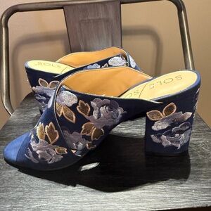 Sole Society Luella Floral Embroidered Heel Mules Sz 8