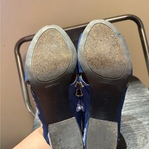 Elegant navy mules with intricate floral embroidery. Perfect for chic outings.