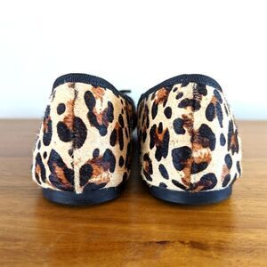 Sole Society Natalie Leopard Print Calf Fur Slip On Ballet Flats, sz 11, simple ballet flats elevated with a luxe calf fur finish, black trim detail, dainty grosgrain bow with gold ends, discrete flaw on the right bow - photo included with needle to show scale, overall in great condition, almond toe, rubber sole, no wear on the soles, ships without box