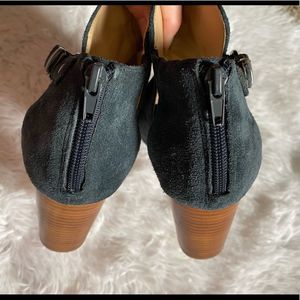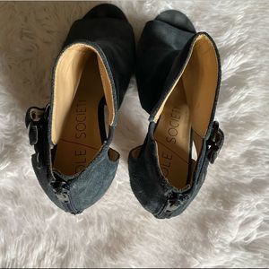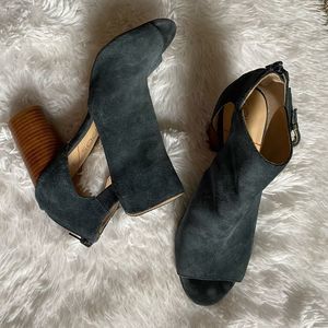 Sole Society Sally Blue Leather Open Toe Heeled Ankle Sandals Booties Size 8.5 M