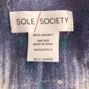 Stay cozy and stylish with this versatile Sole Society shawl poncho sweater blanket. Perfect for layering during cooler seasons, it features a bold, eye-catching design with a mix of purple and teal patterns.