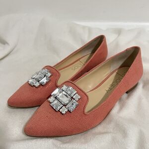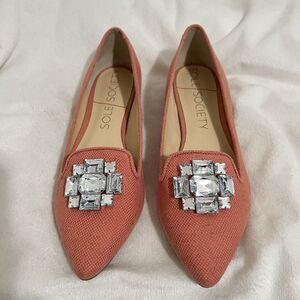 Sole Society Shoes Size 10 Orange Coral Canvas So-Libry Flats Rhinestone Pointed