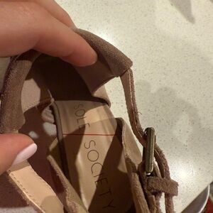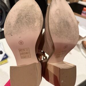 Sole Society Tan Heeled Boots with Open Toe and Suede Texture