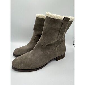 Sole Society Taupe Suede-Like Ankle Boots With Faux Shearling Lining Size 11