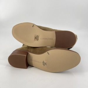 Sole Society Womens 9M Calanth Tobacco Brown Cow Split Suede Slouchy Mid Calf Pull On Boots. mid-height shaft with comfortable collar, this bootie has a contrasting sole and reliable stacked block heel. Features the easy-to wear heel and back button accent