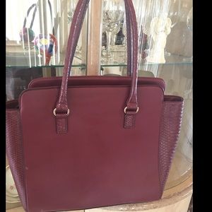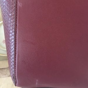 Maroon colored sole society hand bag, very small white scratch on back of bag as show in picture.. used ONCE***
