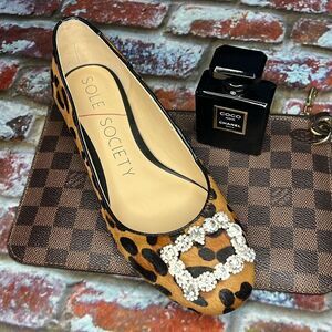 Sole Society, Brown, black animal print cowhide flats with front rhinestone