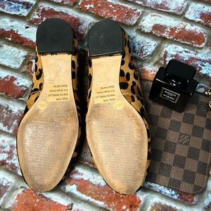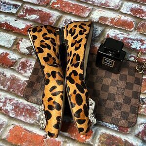 Sole Society, Brown, black animal print cowhide flats with front rhinestone square front detail excellent condition no damage died calf fur