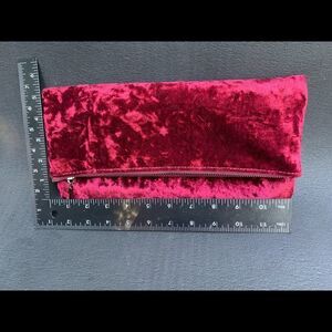 This beautiful velvet and vegan leather bag by Sole Society can be worn as a shoulder bag, using the detachable strap, or as a clutch. It is about 11.5” wide and 6.5” high and features cheetah lining. This accessory can really add something special to your look!