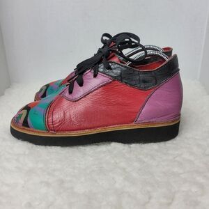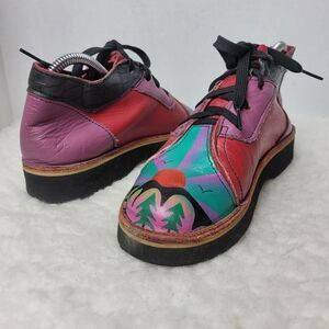 SoleTech Ankle Boot Womens Size 6 Painted Lace Up Habd Print Southwestern