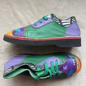 SoleTech Hand Painted Soft Multicolor Leather Lace Up Shoes Women 7 Art To Wear