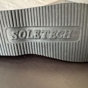 The SoleTech Hand Painted Soft Multicolor Leather Lace Up Shoes in size 7 are a unique and stylish choice for women. These ankle-length sneakers feature a round toe and flat heel, making them perfect for casual occasions and walking activities. The hand-painted accents add a touch of artistry to the colorful design, making them a stand-out piece to wear in any season. Made with leather lining and upper material, these shoes offer both comfort and durability for everyday wear.