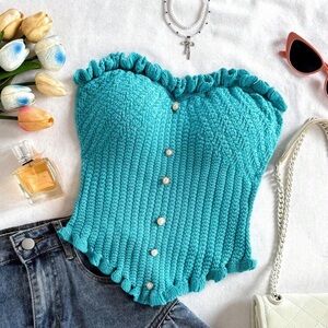 Soleia Women's Button Decor Fashion Casual Ruffle Hem Knitted Camisole Top
