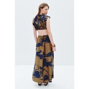 Materials and Measurements Brown abstract (25% Silk, 75% Cotton). Casual Dress. Crew neck. Cap sleeves. Back zipper closure. Shoulder to hemline length: 59.5". Imported.