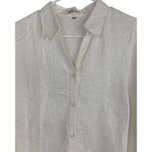Soleil Womens Ivory Linen Blend Button Blouse 3XL RBB10449