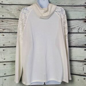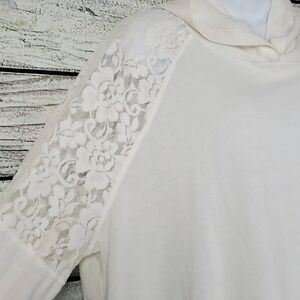 Soleillee Women’s 2X White Long Sleeve Hoodie Lace Shoulder Pullover Plus Size T