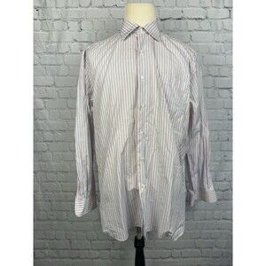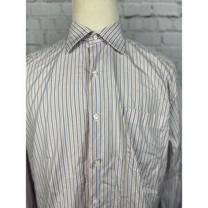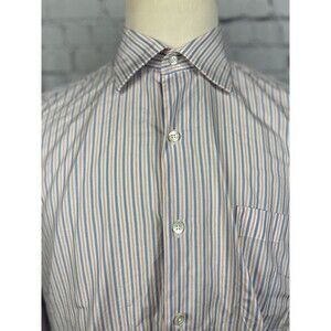 Solemare Maus Hoffman Dress Shirt Men 17/43 White,Orange,Blue Striped Button Up