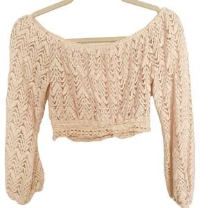 Cream lace crop top. Long sleeve. Can be worn off the shoulder or not. Sheer. Elastic hem. Size L. Excellent condition.