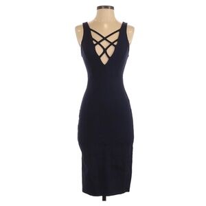 Solemio ♡ Deep Blue Bodycon Dress w Criss-cross V-neck