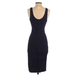 This dress is perfect for a wedding guest! Roughly knee-length with a sexy (but still classy) plunge and criss-cross / lace-up neckline. Stretchy, but thick and structured fabric, so it holds a SUPER flattering shape! This was such an amazing find for my friend's wedding. (It doesn't fit me anymore, but I've been searching for it in my current size!)