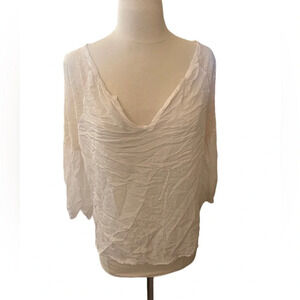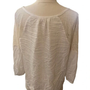 Solemio white lace detail 3/4 sleeve loose fit bohemian blouse top women’s sz m