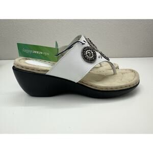 Solesenseability Womens Thong Sandals Size 6.5 SyonaWhite Leather Slip-On Beaded