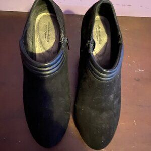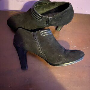 Details: Solestainability black high heel booties with side zipper size 7 there is NO size in them so see the measurements since they are snug on me I am guessing they are a size 7 I am a 7.5