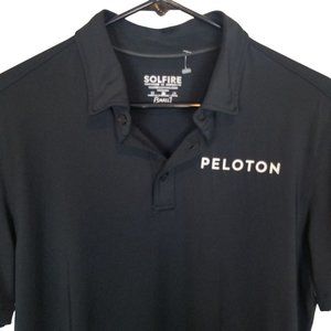 Solfire Peloton Mens S Black Spell Out Short Sleeve Polo Shirt Collared Pullover