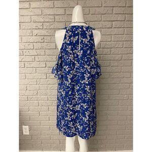 Solgee Royal Blue Floral Cold Shoulder Dress Size M