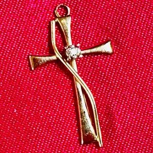 Solid 10K Yellow Gold Natural Diamond Accent Cross Religious Pendant