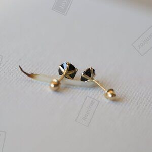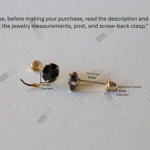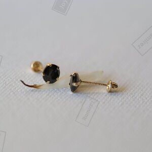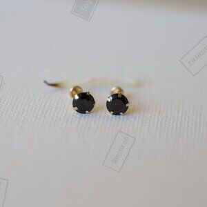 Solid 14K Gold Earrings With Black Zirconia 5 mm Classic Elegance & Bold Shine.