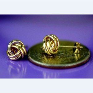 Solid 14K Gold Polished Love Knot Stud Push Back Earrings Size Medium- 10mm