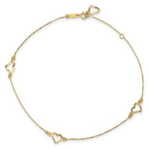 Solid 14K Yellow Gold Heart Charm Station Box Chain Anklet 9 inch + 1 inch Ext.
