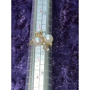 Solid 14k Gold Ring with 6 Diamonds 2 Fresh Water Pearls Size 5.75 Weight 4 Gram