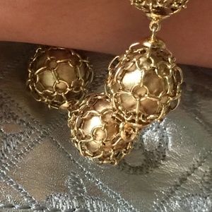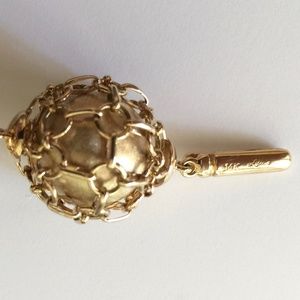 This is a private design handmade ooak solid Gold bracelet. The net weight is 85g of 14 k gold. The total length of the bracelet measures 9 inches. Each of the balls are brushed gold and measure ~ 1.5 centimeters. Each ball is wrapped in a loose chain net. This design took over a month to make. More pictures will follow. The closure is a hidden clasp. This is the only bracelet of its kind.