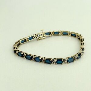 STUNNING 14k Yellow Gold Sapphire & Diamond Vintage Tennis Bracelet