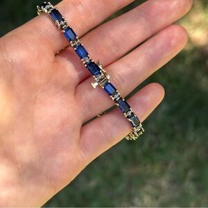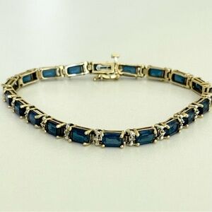 Solid 14k Yellow Gold Sapphire & Diamond Tennis Bracelet