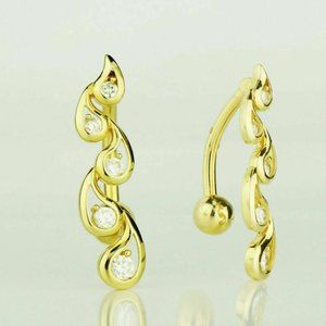 Solid 14k Yellow or White Gold Vertical Drop Top Down Belly Button Ring