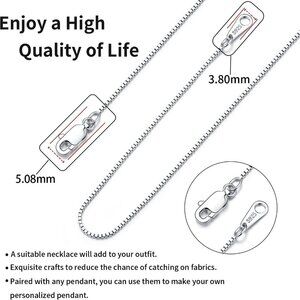Super Thin & Lightweight & Sturdy: Tightly connected by a lot of square boxes, perfect width of 0.8mm, really delicate and elegant looking, not too thin to get tangled in or pull out your hair, or break easily, but not too thick to be bulky. Absolutely lightweight to lay on your neck comfortably and beautifully. Adopted upgraded lobster claw clasp, which is stronger than spring clip, to make our silver chain more sturdy and last a long time.