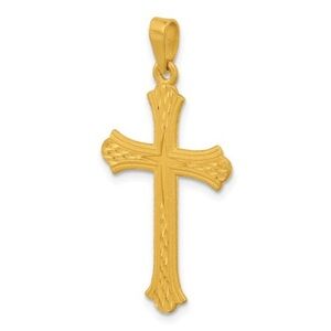 Perfect as a gift or a personal keepsake, the Herco 24K Polished and Diamond-Cut Solid Cross Pendant is a meaningful accessory that complements any outfit, embodying both style and spirituality.