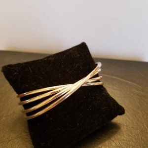 Solid 925 Sterling Silver 4 Bar Twisted Crossover Open Cuff Bracelet 41.18 Grams